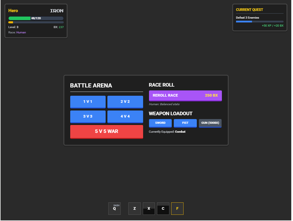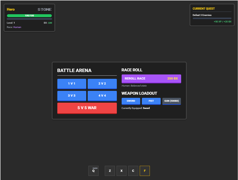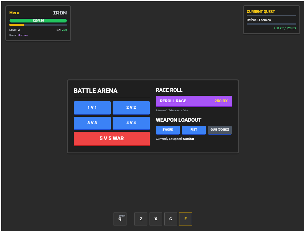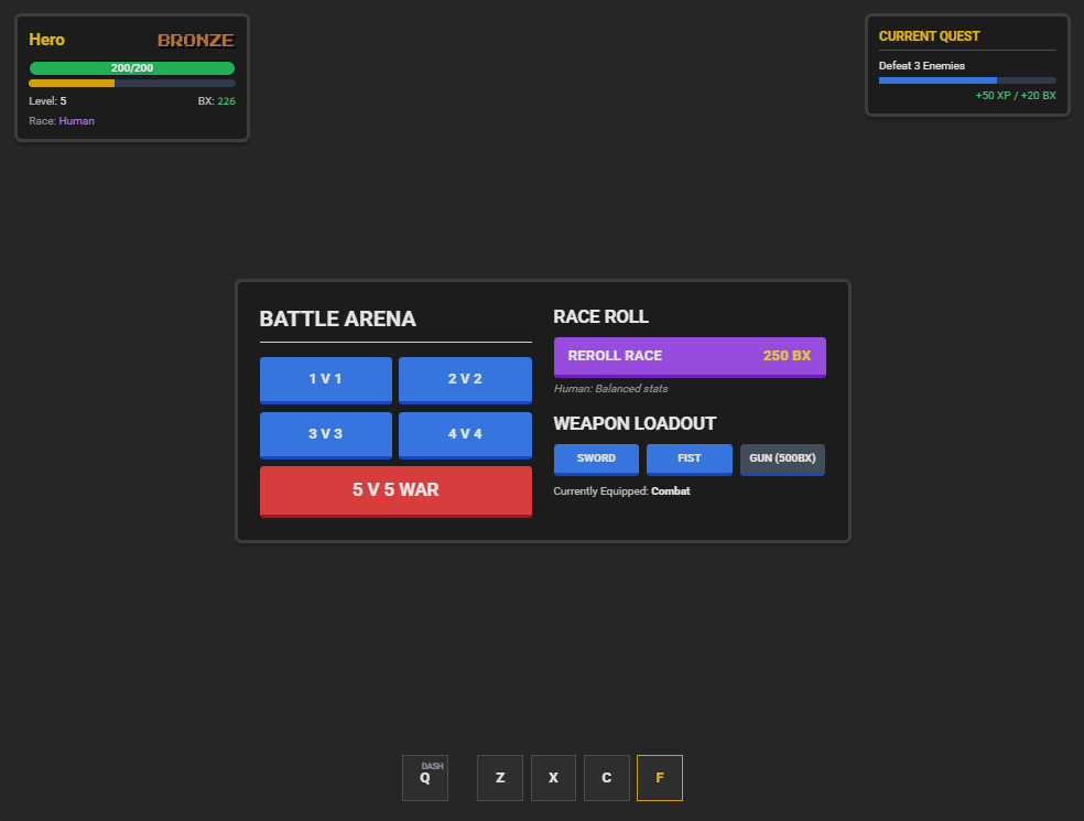 Welcome to BloxRanks. It's a game where you can level up as a hero in the medieval era from a stone rank all the way to bronze, silver and much more. There are races, too. I'll try to update this game regularly.